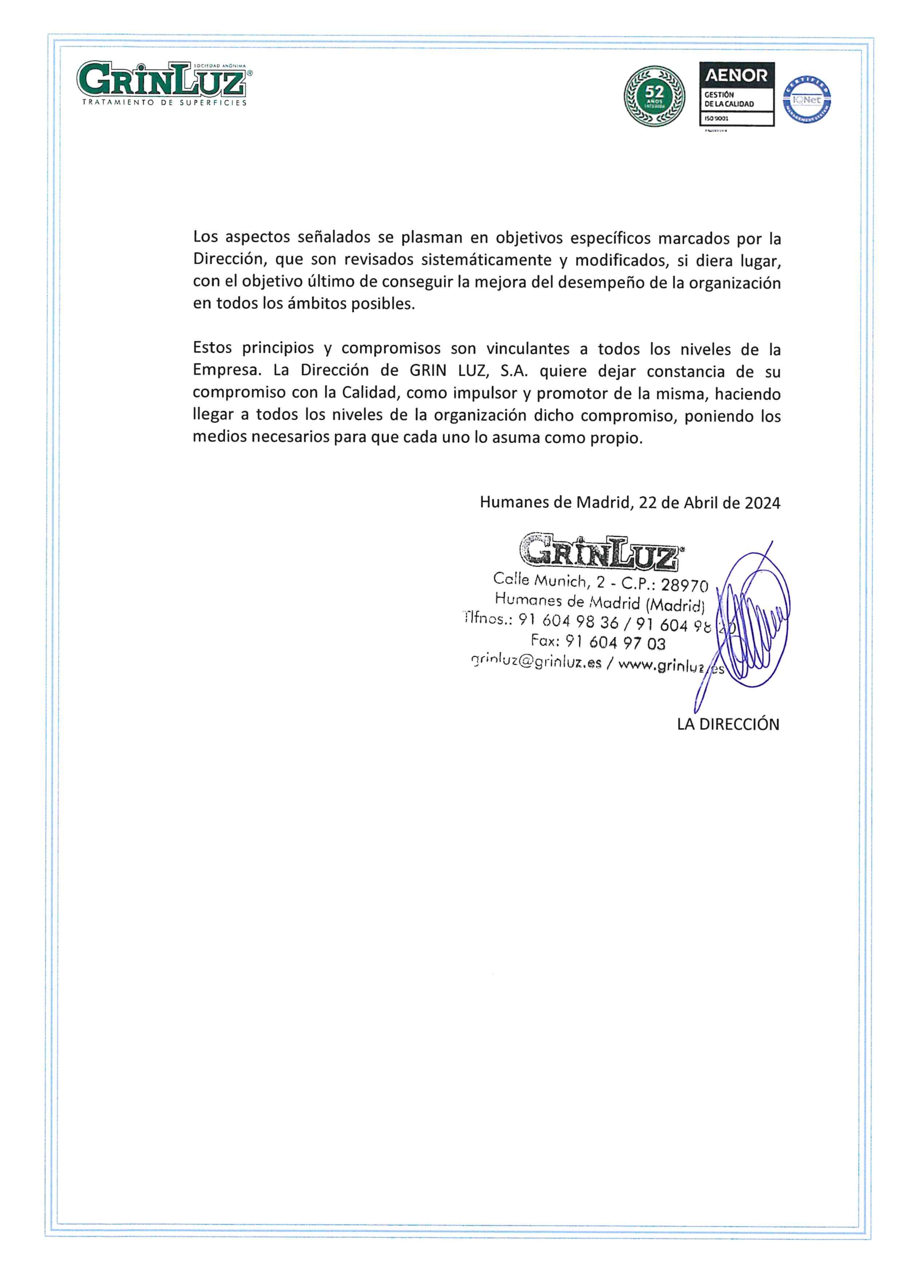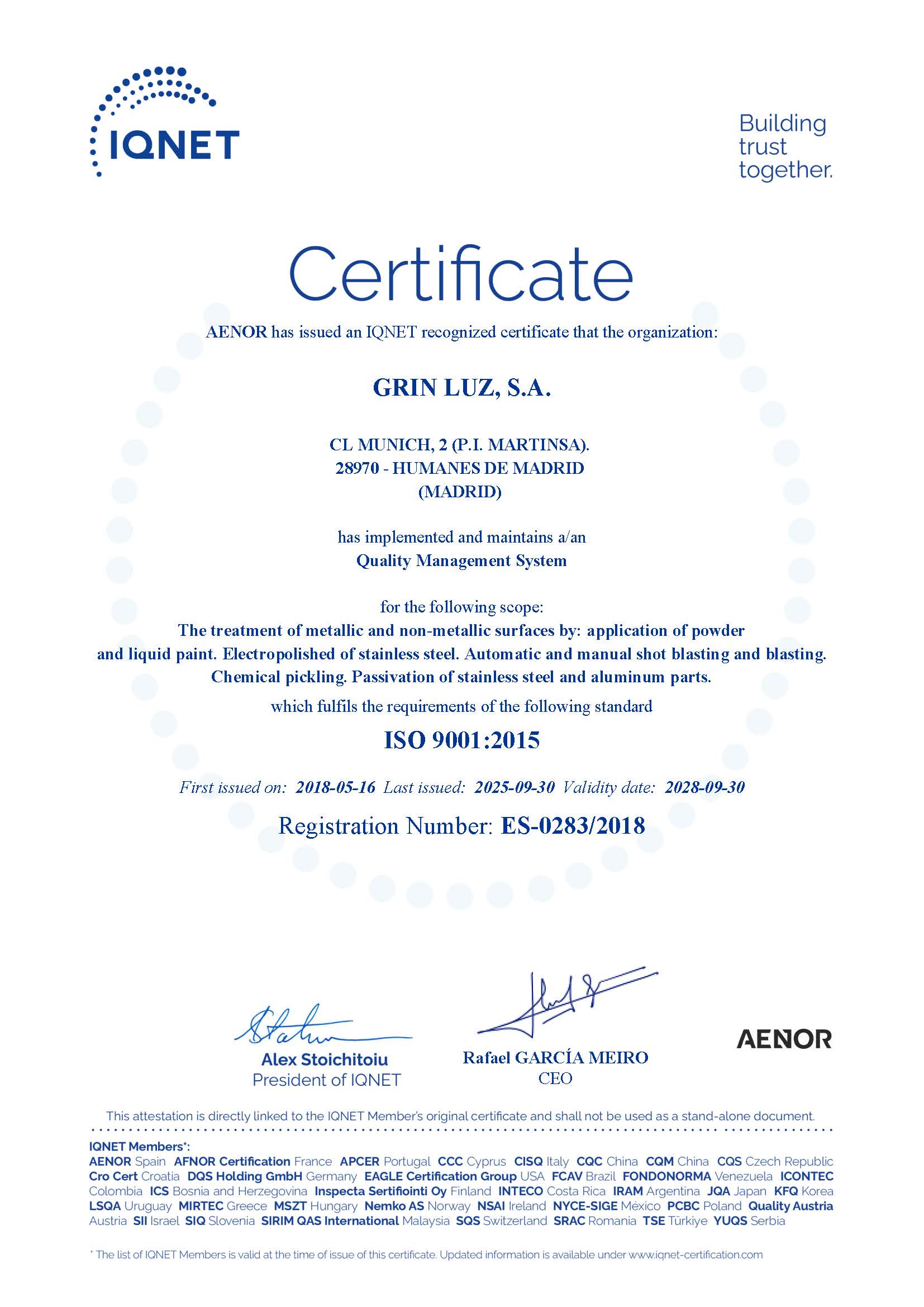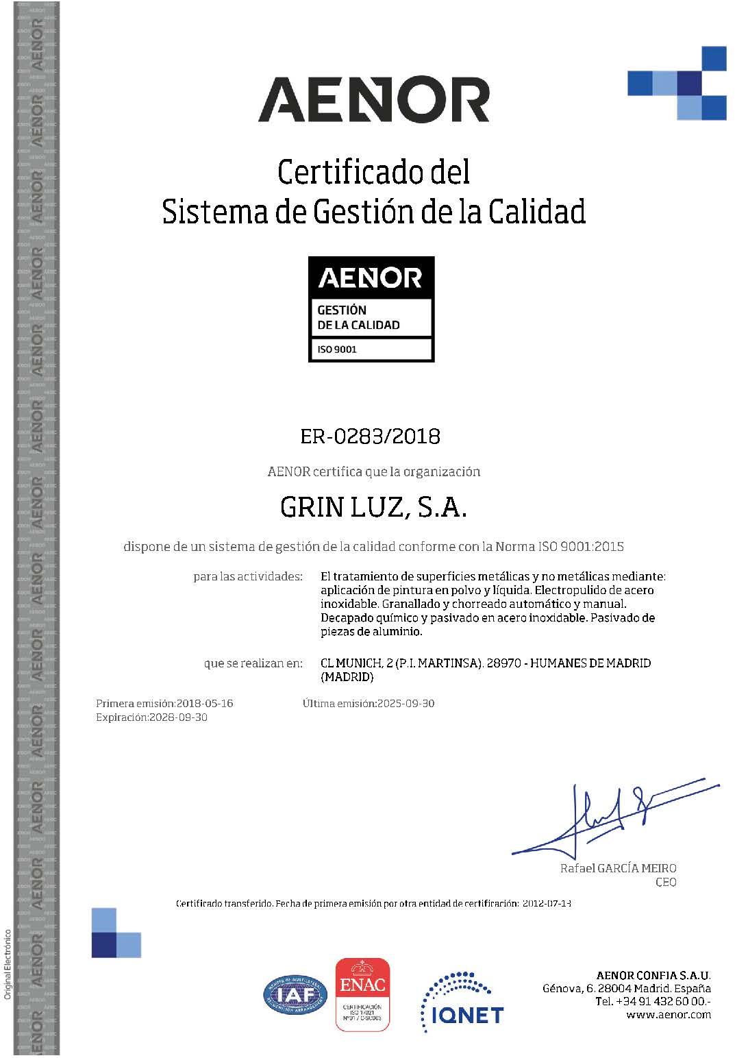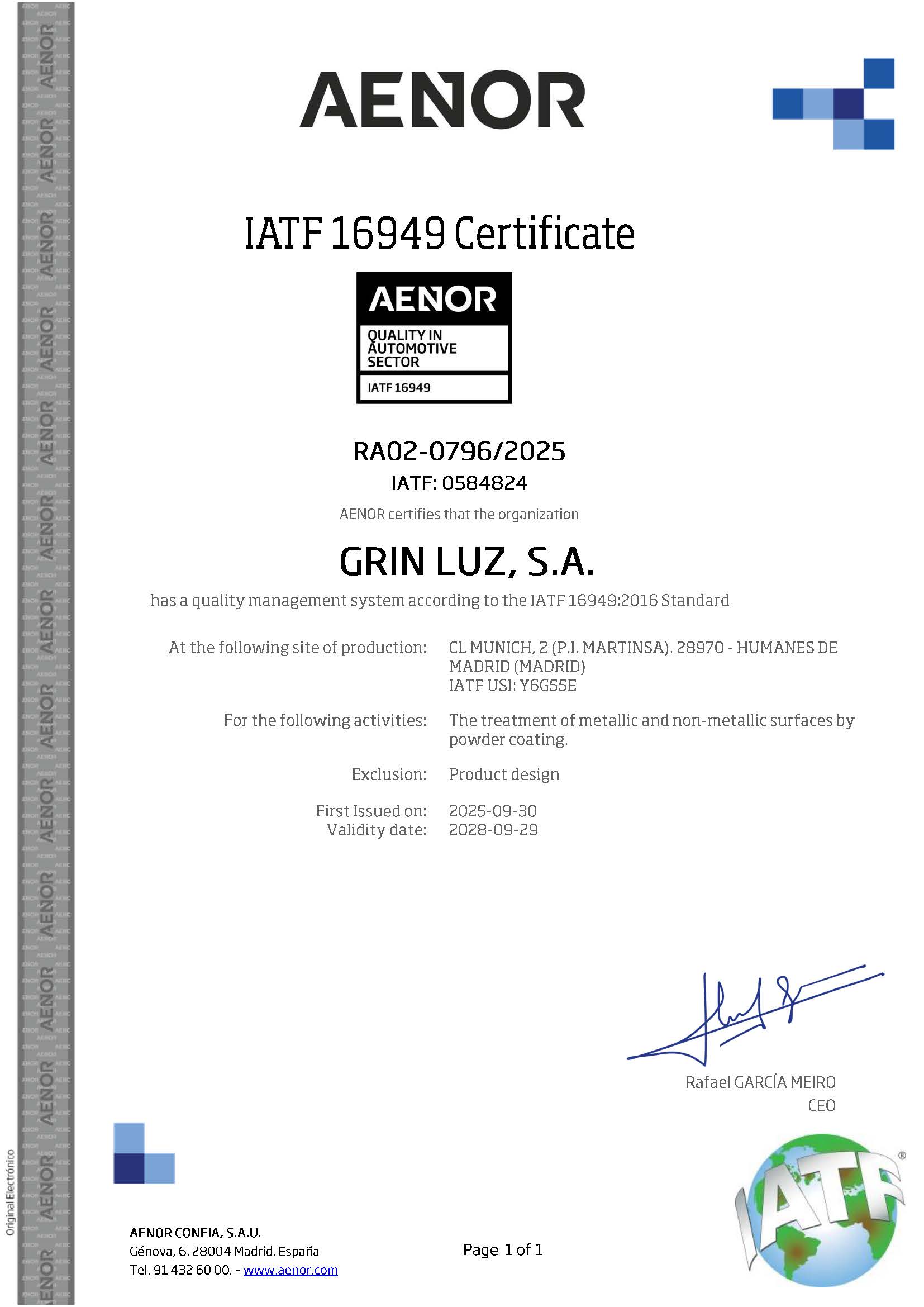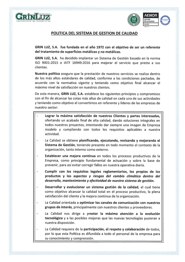 Empresa certificada bajo los estádares de la norma ISO 9001 e IATF 16949: 2016